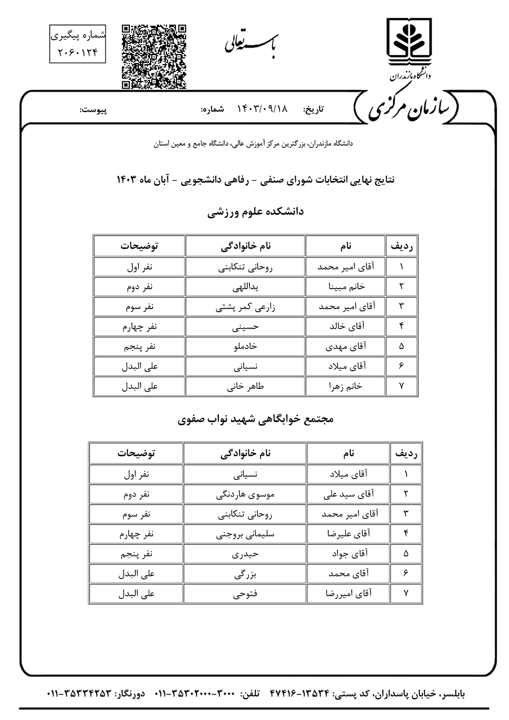 اعلام نتایج نهایی انتخابات شورای صنفی - رفاهی دانشجویی - دانشگاه مازندران