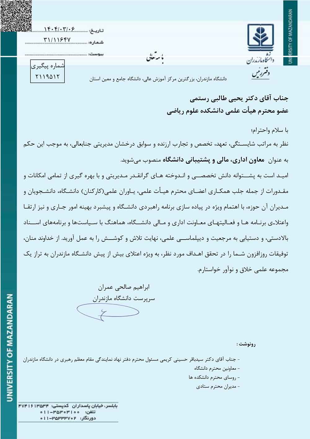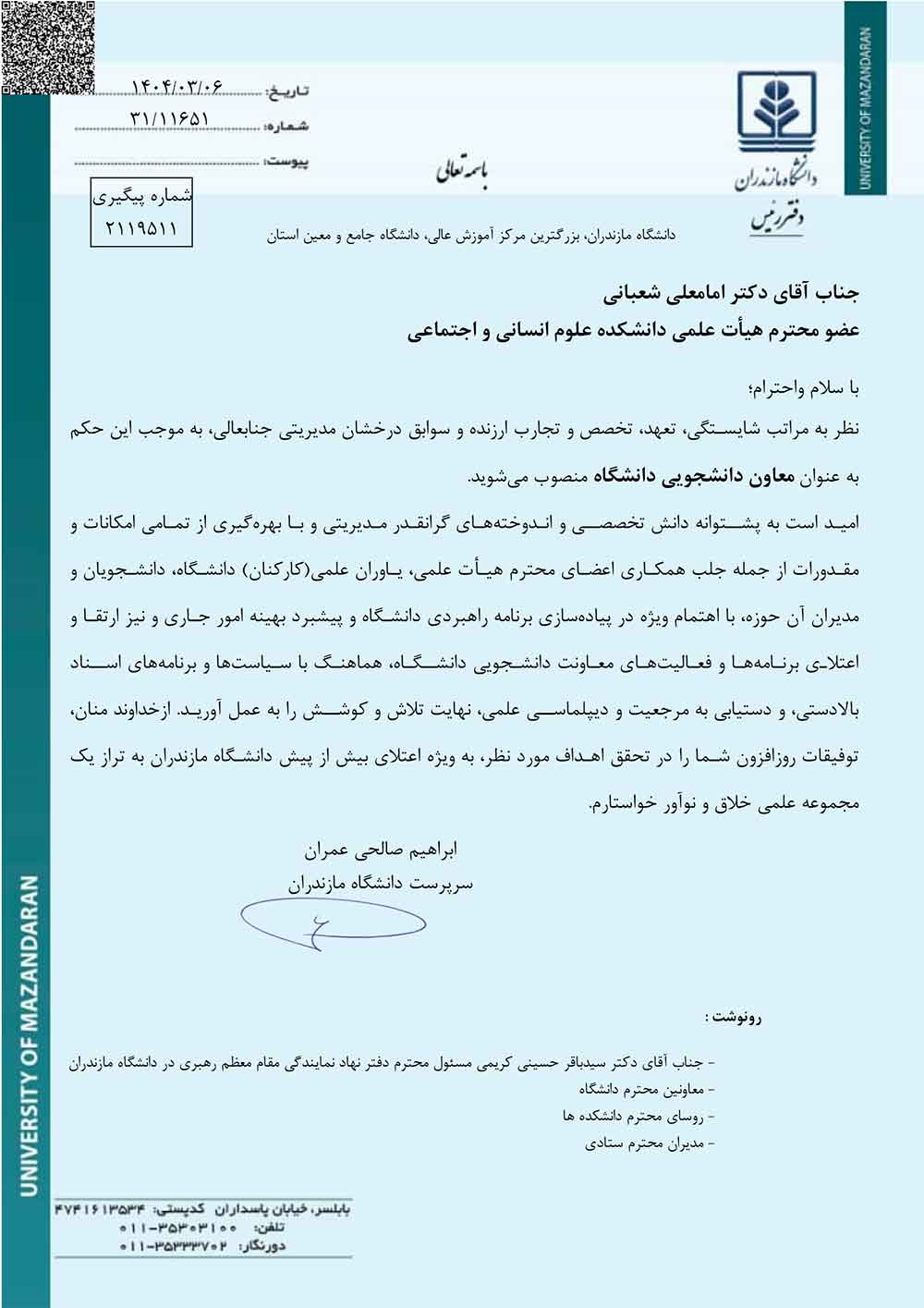 انتصابات جدید در دانشگاه مازندران انجام شد - دانشگاه مازندران