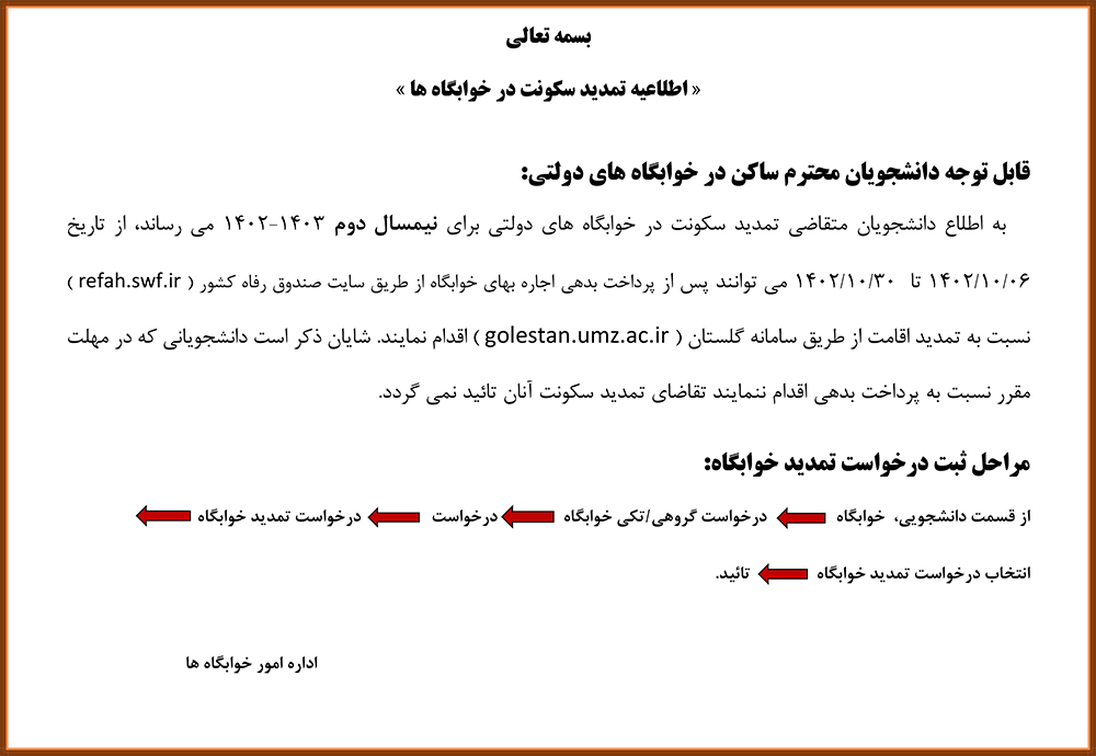 تمدید سکونت در خوابگاههای دولتی - دانشگاه مازندران