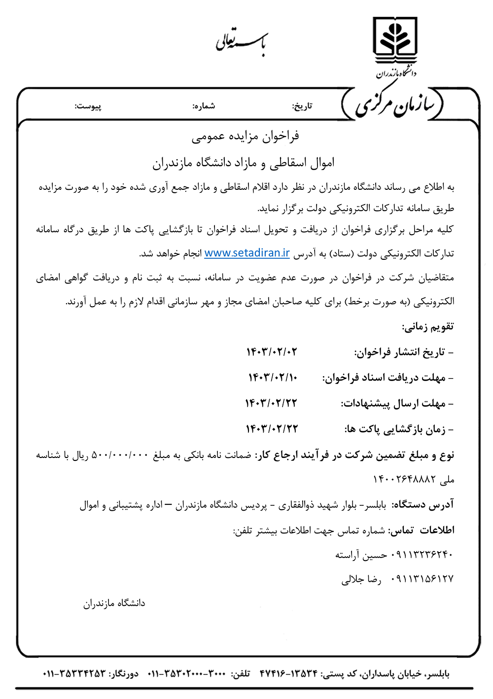 فراخوان مزایده عمومی اموال اسقاطی و مازاد دانشگاه مازندران